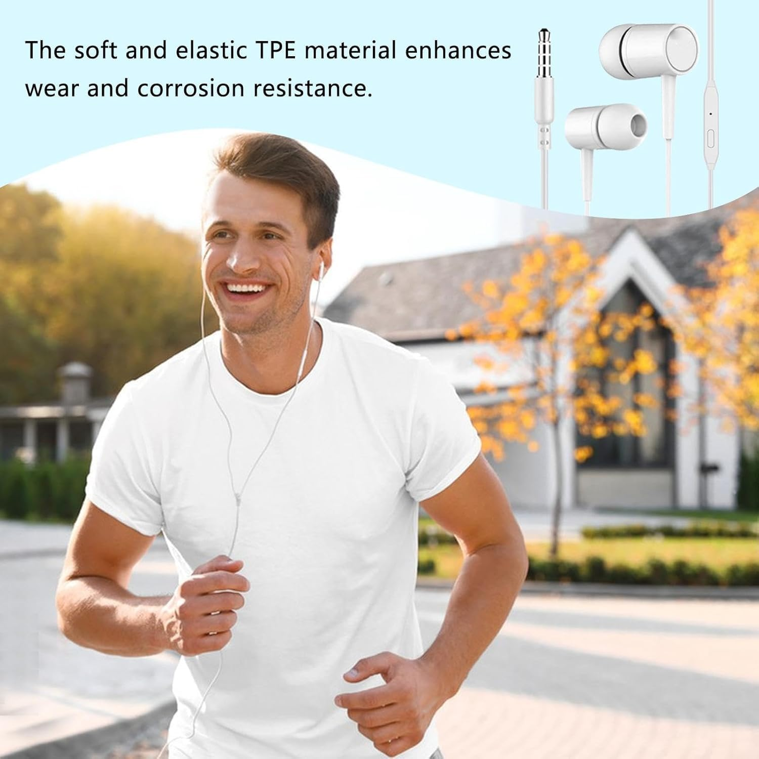 2 Pack Wired Earbuds with Microphone & Deep Bass, Noise Isolating in-Ear Headphones, HD Stereo Sound & Secure Fit for Sports Running Gym, Compatible with All 3.5mm Jack Devices (Black+White)